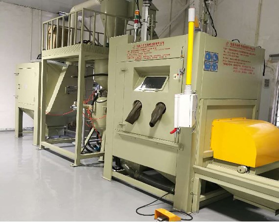 机器特性:X-Y人性化设计,大容量触摸屏可储存100组以上程式,采用三菱伺服系统、PLC,编程简单快捷,设有快速报警查询,快速阅览处理误操作及机器故障等人性化设计。所有电器采用进口品牌。增压喷砂(50psi)回收系统采用内循环无污染。台车自动进出喷砂仓省时省力。